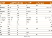 جدول إختصارات الالوان المستخدمة فى قراءة مخطط الاسلاك COMMON COLOR CODES USED IN Read WIRING DIAGRAM