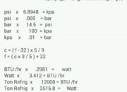 جدول تصميم الكابلرى…بعض الحسابات اثناء اختيار الكابلرى المناسب … مع بعض التحويلات المهمة في عالم التبريد